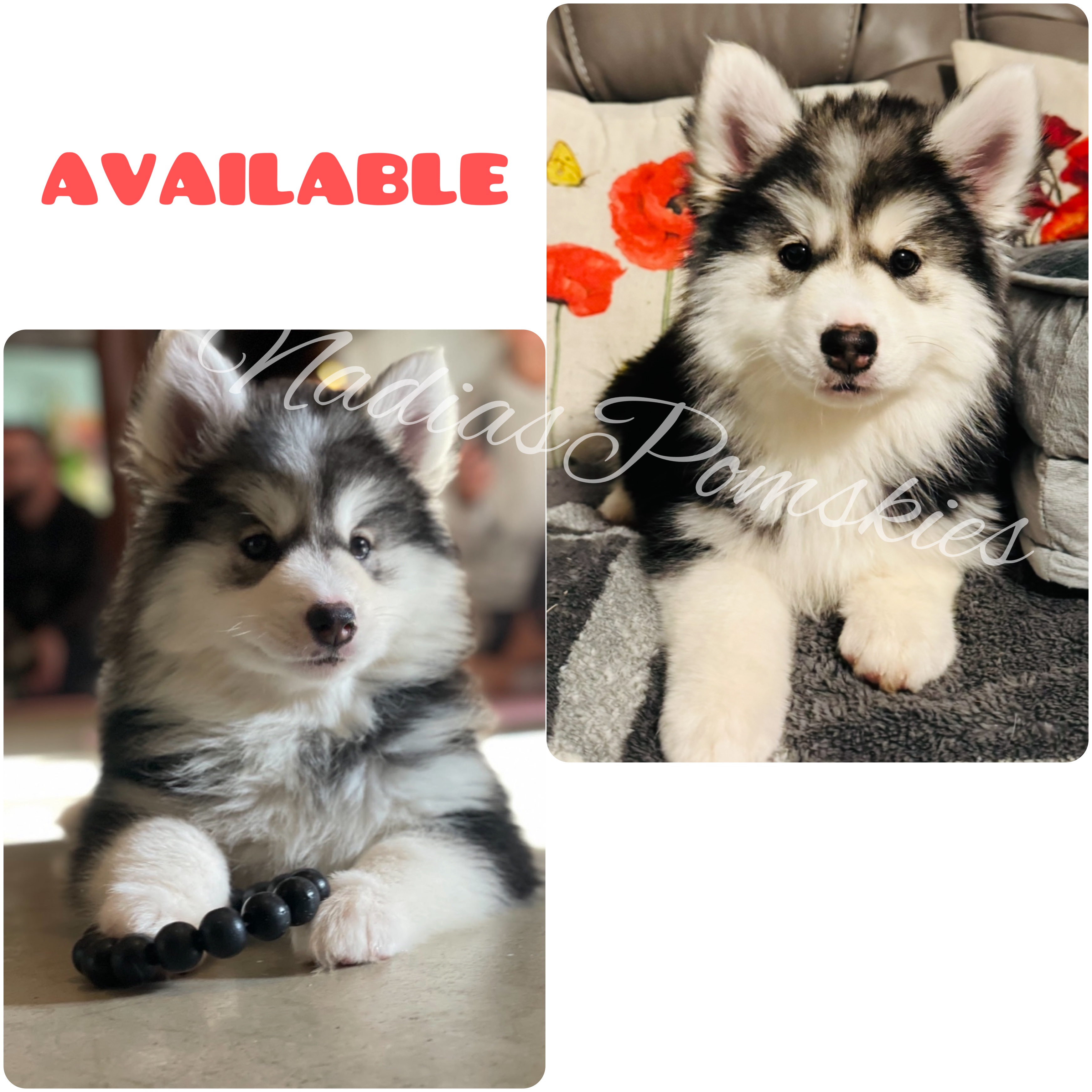 We have one Pomsky GIRl Available. She is 10 weeks old and up to date on all her shots. Call or Text for more info 470-774-3850